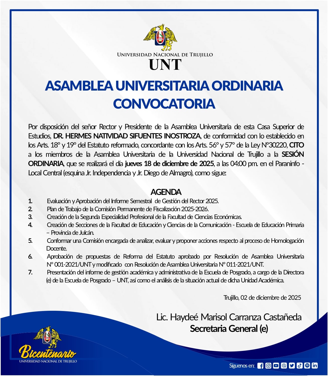 Convocatoria a Asamblea Universitaria Ordinaria