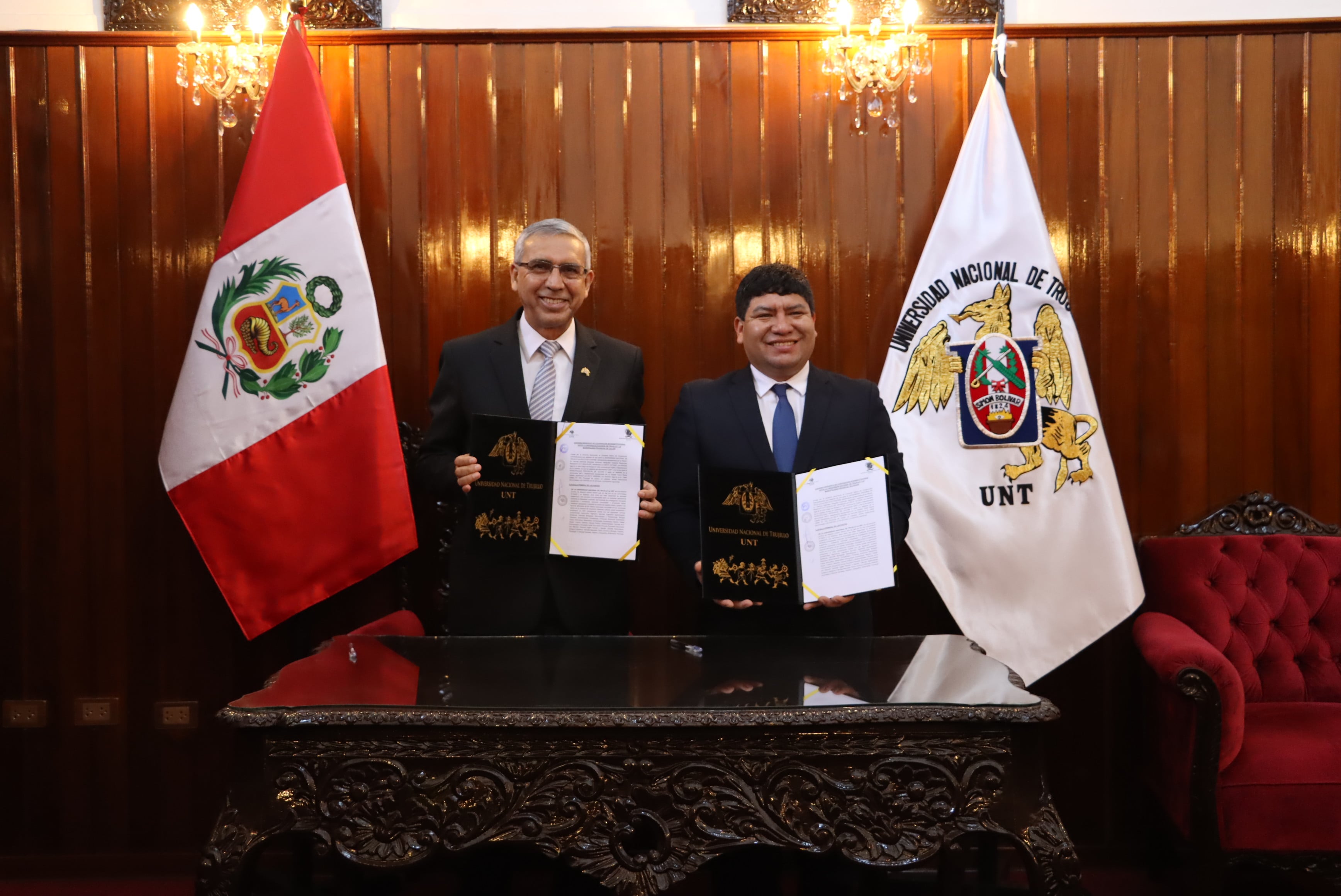 la UNT, Dr. Hermes Sifuentes Inostroza, y el alcalde provincial de Julcán,