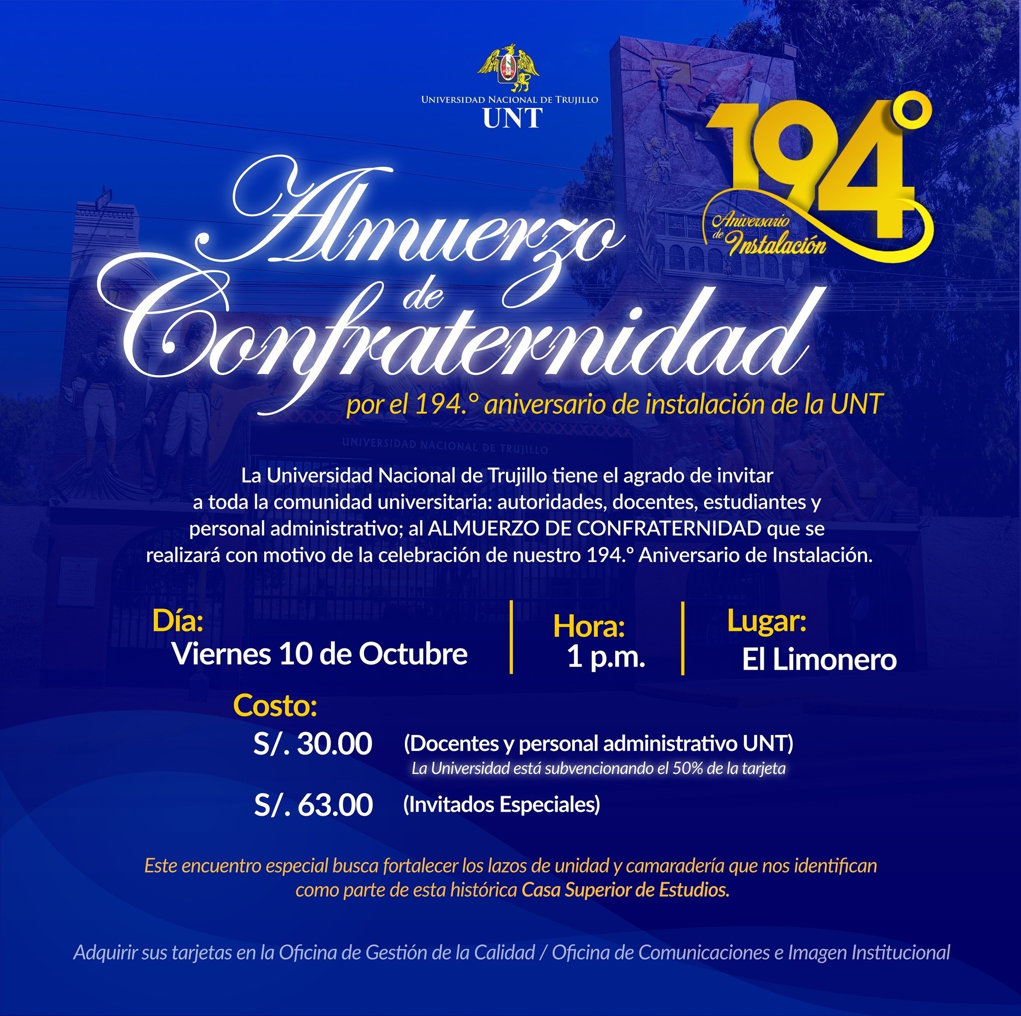 Almuerzo de Confraternidad por el 194.° Aniversario de Instalación de la UNT